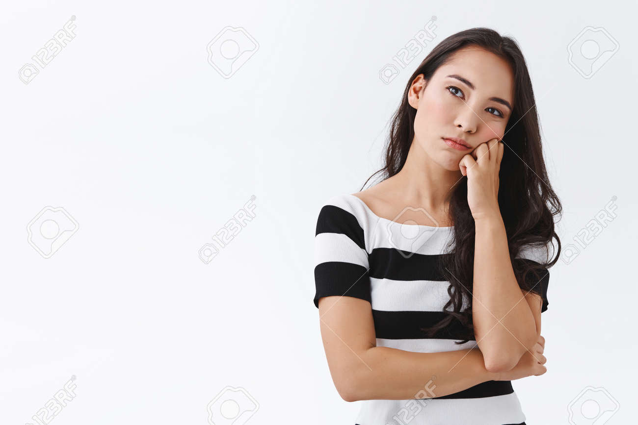Bored Young Asian Woman Looking Into Distance With Unamused Sad Expression, Lean