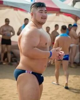 Fat Asian Man Wearing Sportswear While Patting His Chest In The Middle Of The Ro