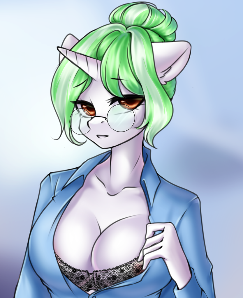 #3253974 - suggestive, artist:yutakira92, oc, oc only, unicorn, anthro, big brea